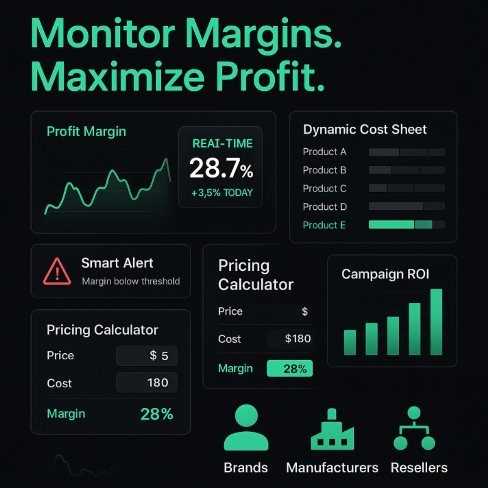 TrackMargin is your intelligent business companion for real-time profit visibility and pricing control. Built for brands, manufacturers, and resellers, TrackMargin simplifies margin tracking across SKUs and campaigns—ensuring you never compromise on profitability.